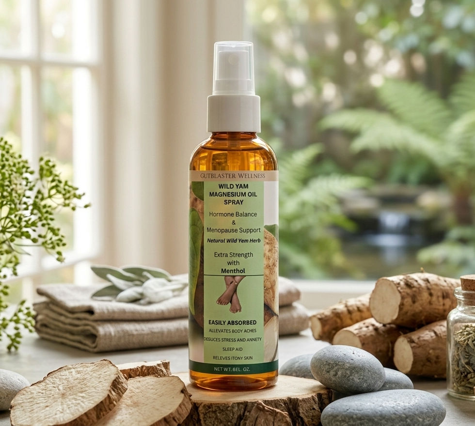 This fast-absorbing spray blends magnesium oil with wild yam root extract, an herb traditionally used in women’s wellness practices, to support relaxation, muscle comfort, and overall hormone wellness—without pills or synthetic hormones.